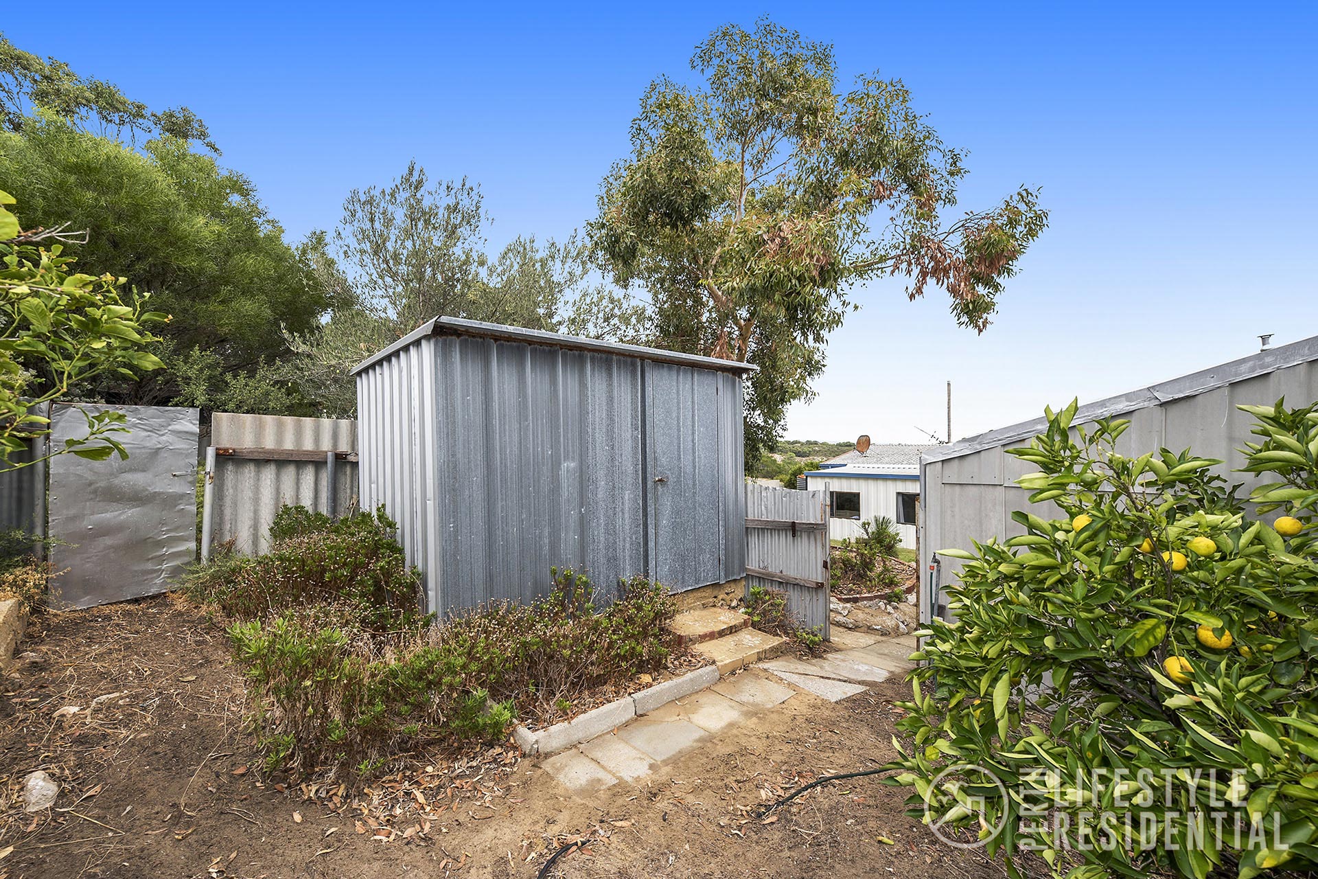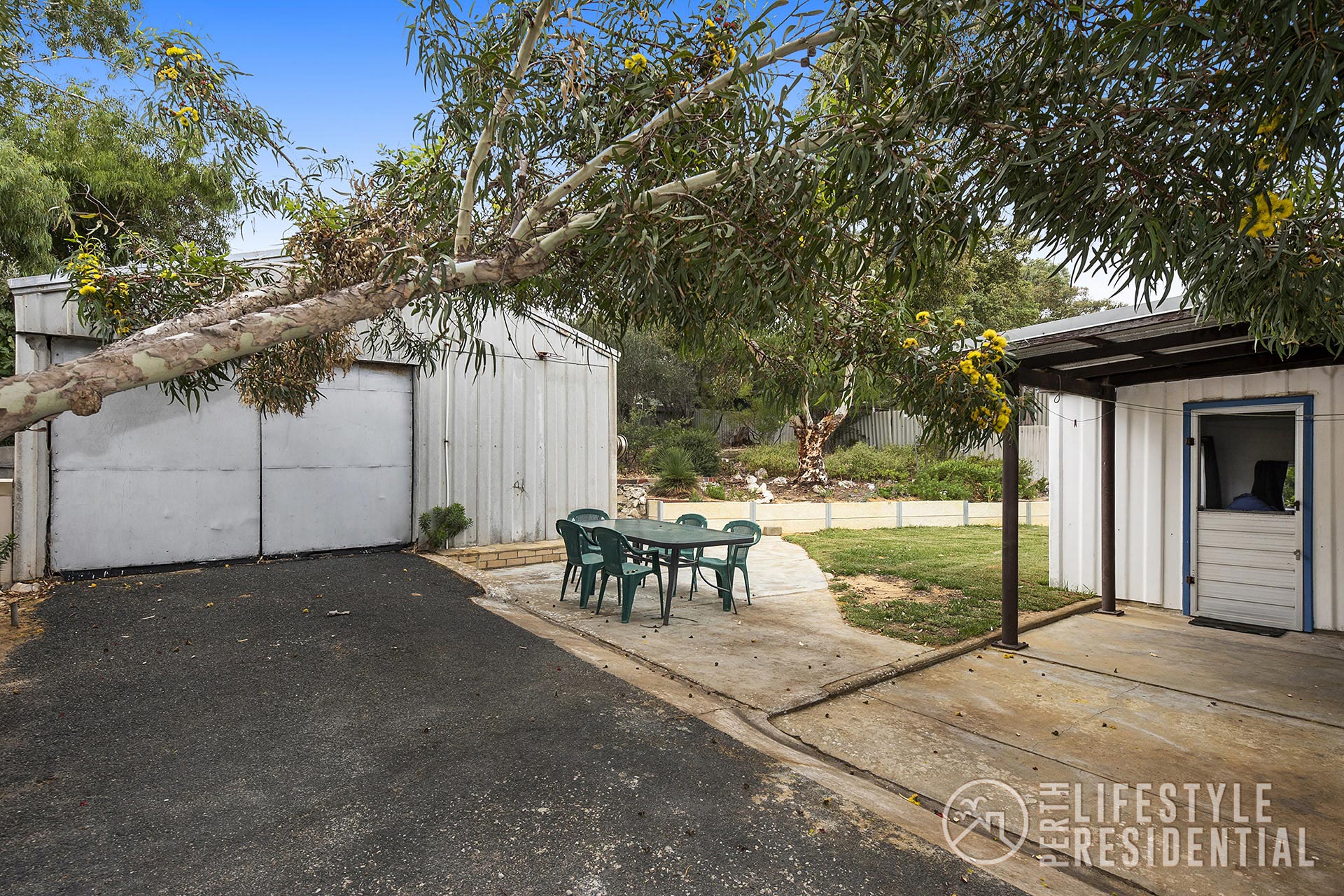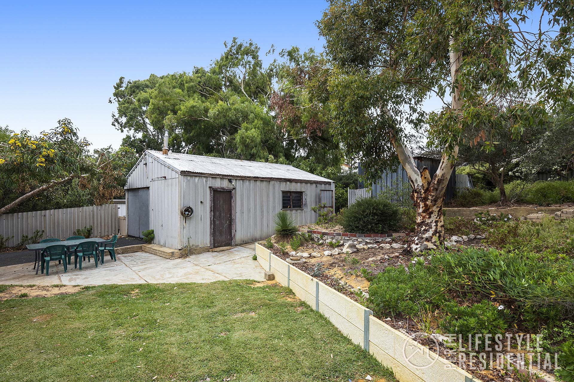 The rear garden has a very large garage/workshop with its own designated sealed driveway. A smaller secondary shed provides extra room for all those garden tools and equipment. The rear garden has several well established trees providing additional shaded areas for those relaxing times during the day, or sit out on your own front balcony. There are some mature fruit trees at the rear of the block.