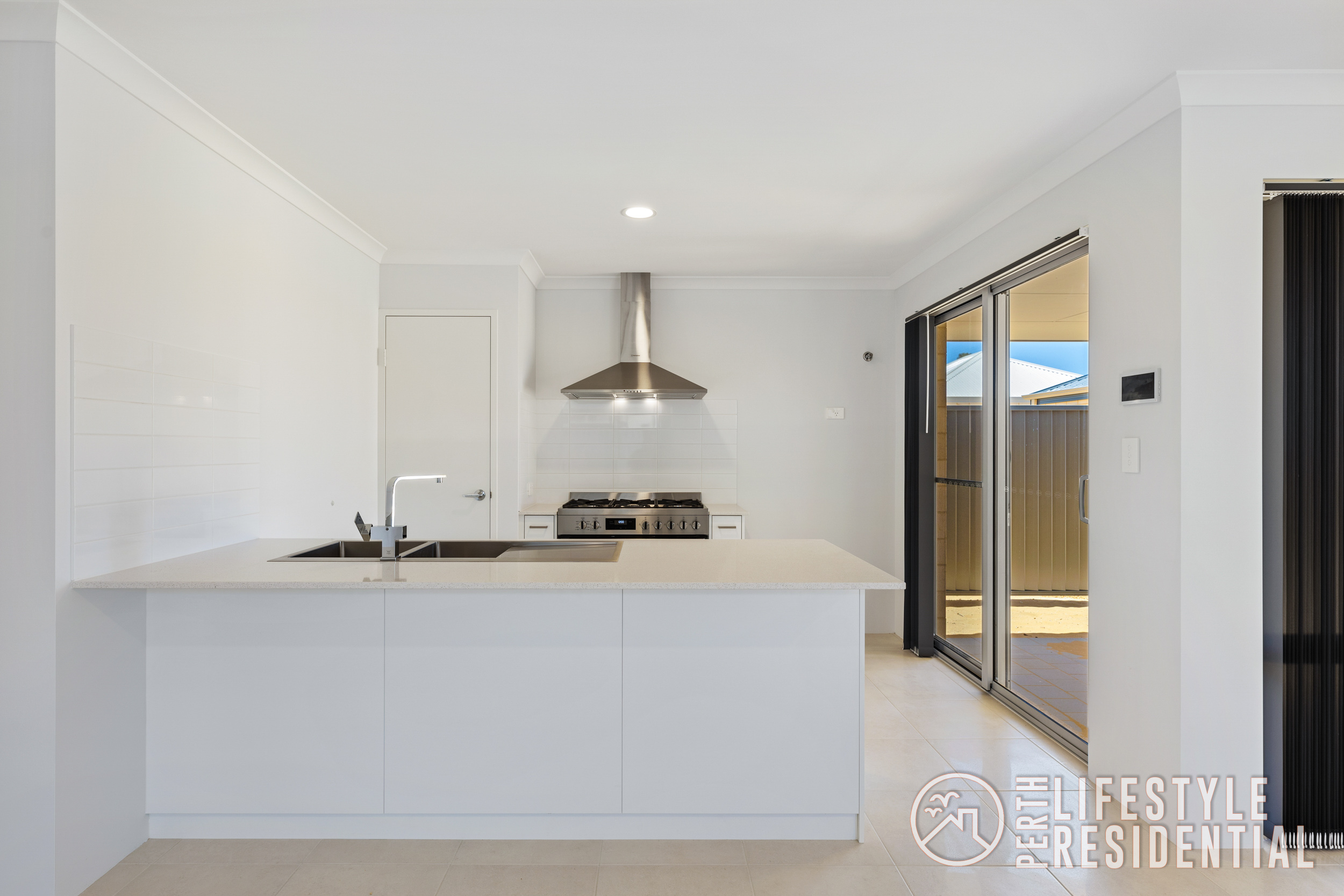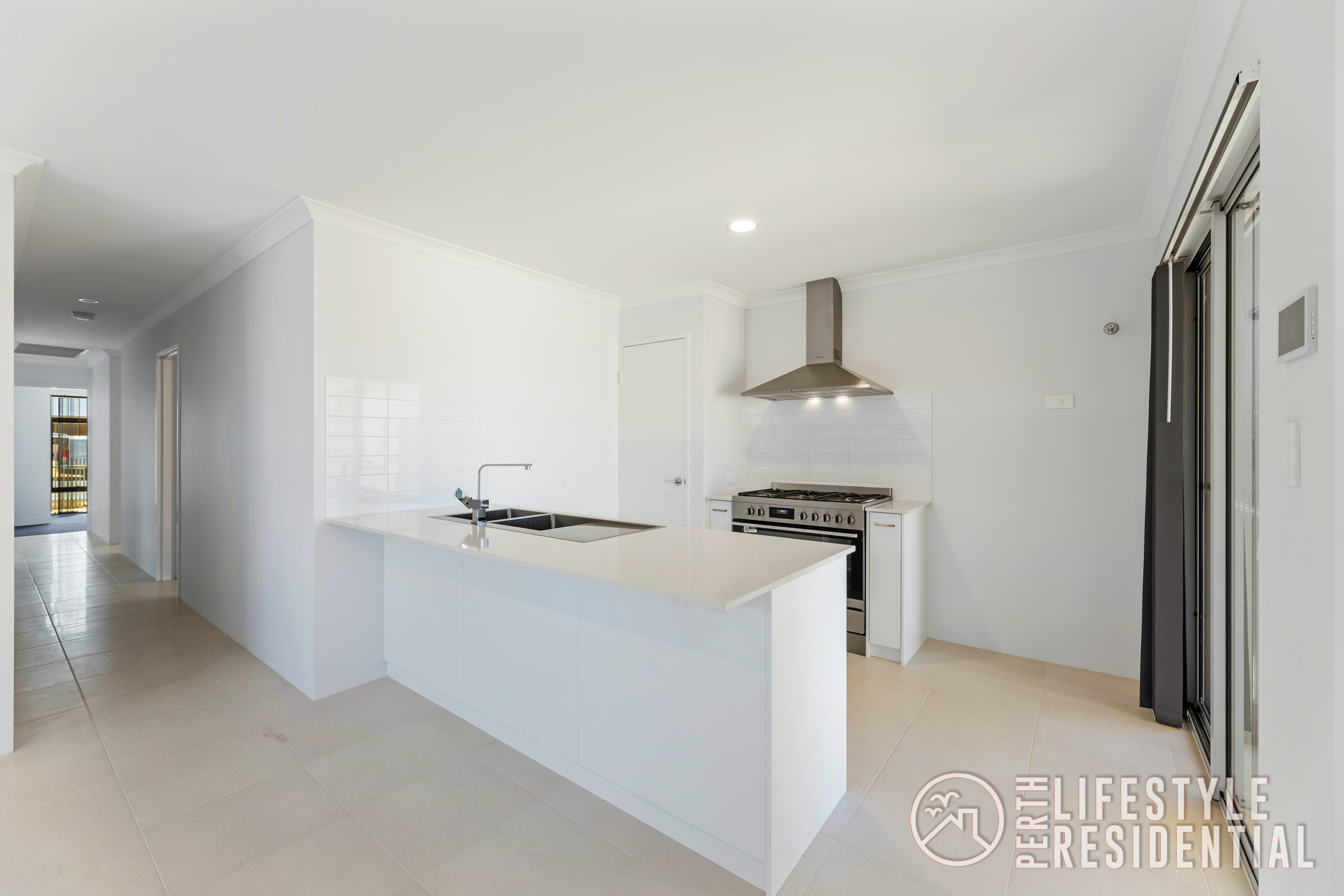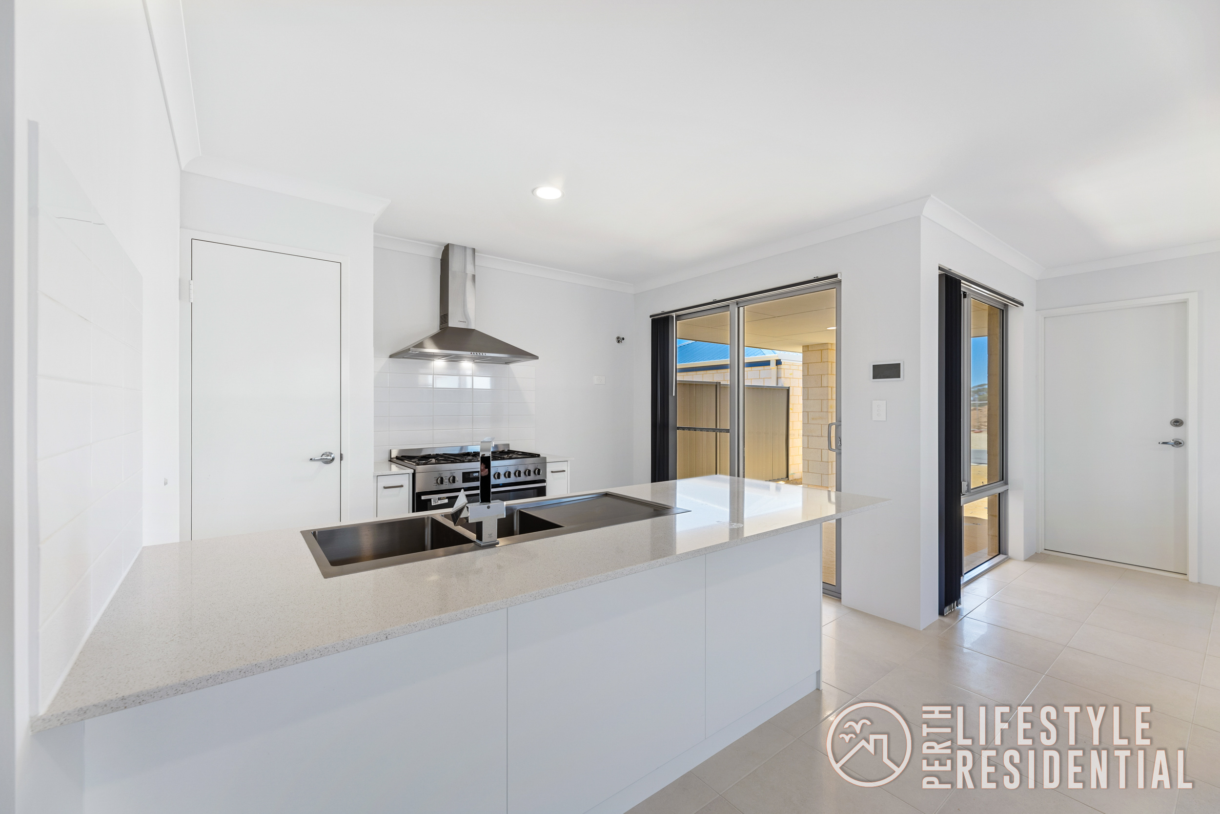 The family-sized kitchen features sleek stone benchtops, a 900mm stainless steel upright stove, ample storage and a water point for a fridge with icemaker, all overlooking the main living zone finished with easy-care tiling. Year-round comfort is assured with ducted reverse-cycle air-conditioning throughout.