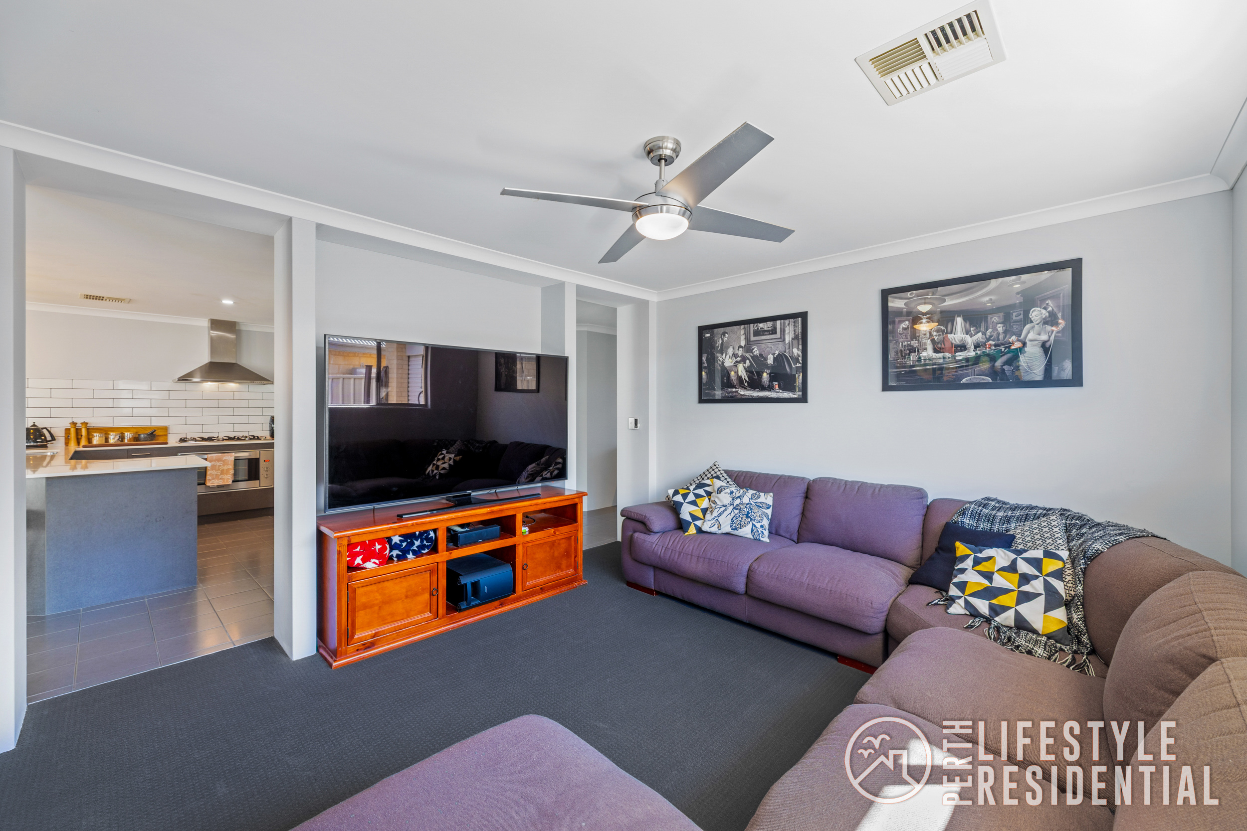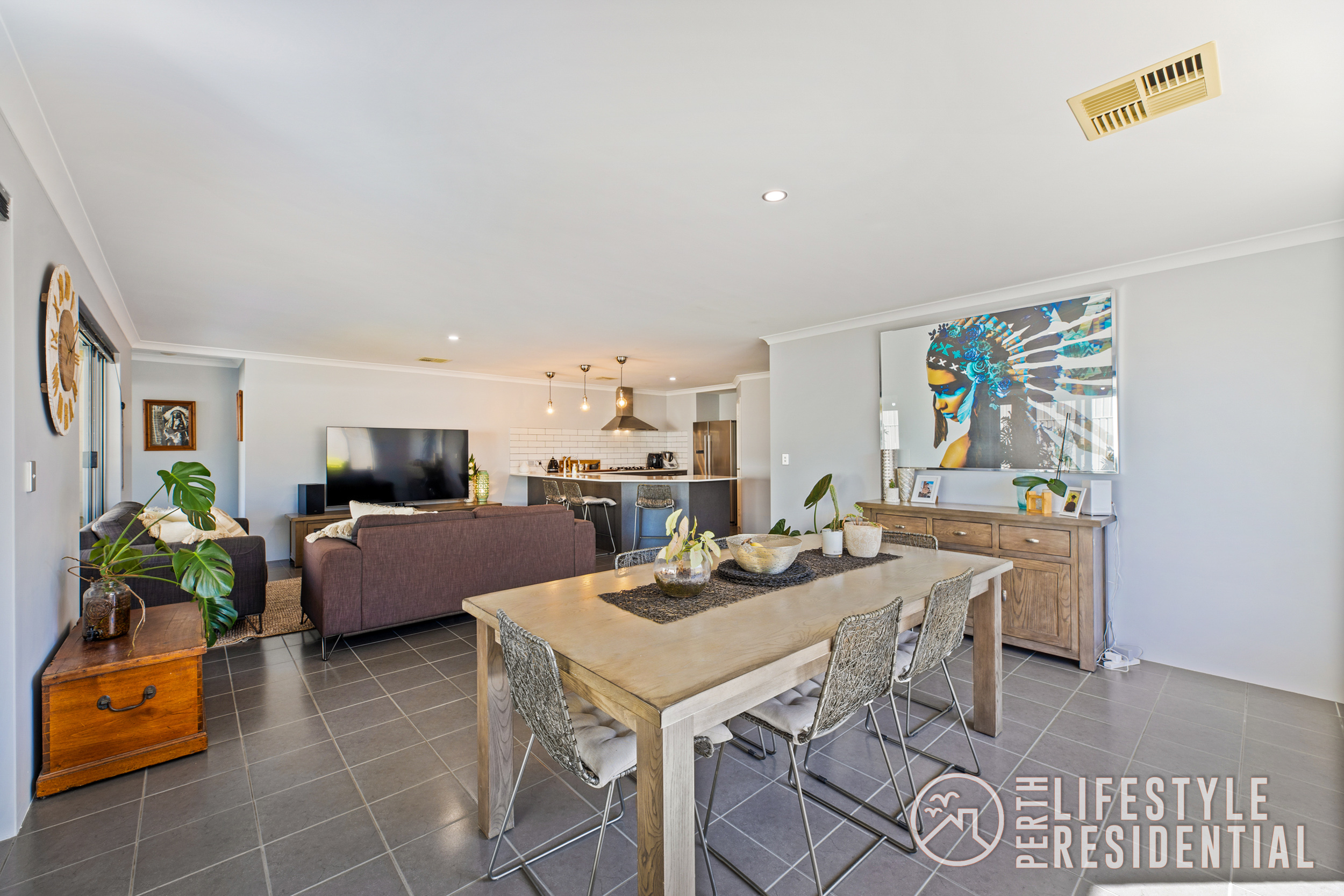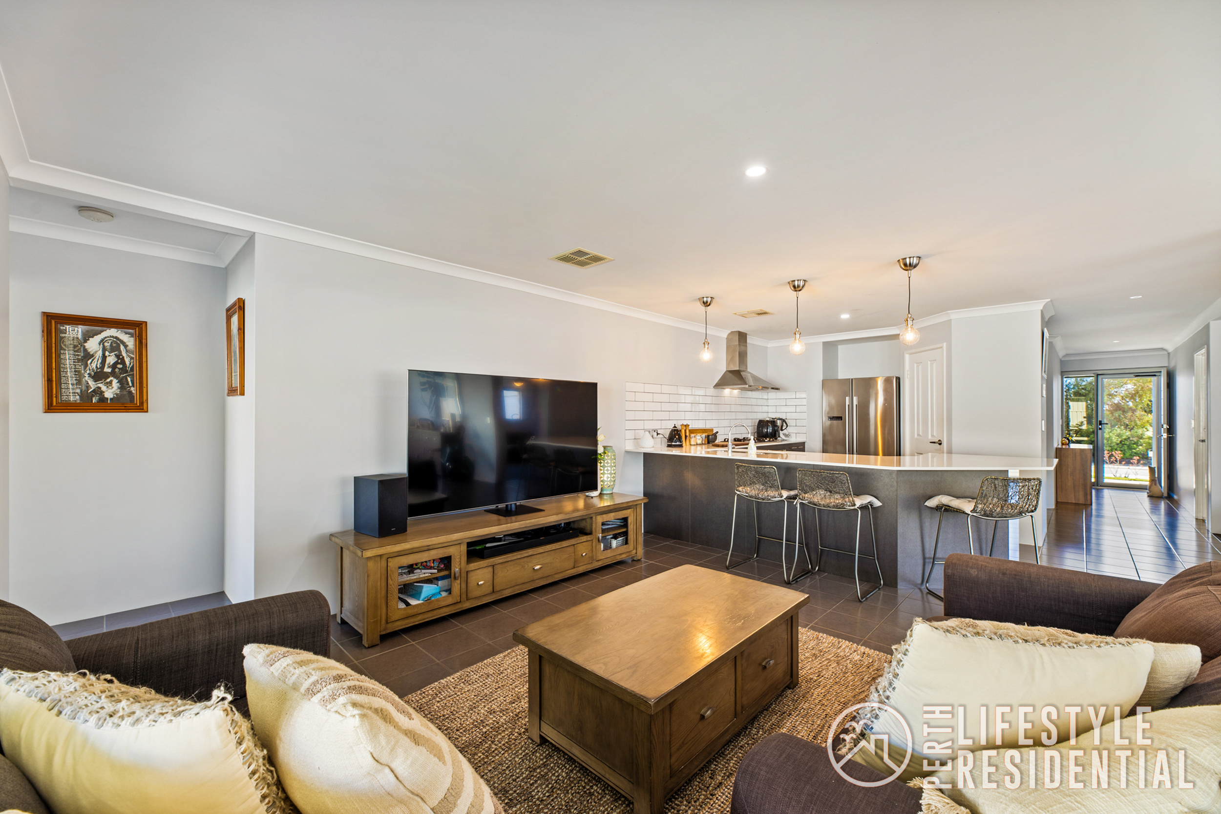 At the heart of the home, the gourmet kitchen takes centre stage with a stone benchtops, gas cooktop, stainless steel appliances, modern pendant lighting perfect for entertaining. The layout flows effortlessly into the spacious open-plan living and dining area, plus a separate theatre room, offering multiple living zones for the whole family.