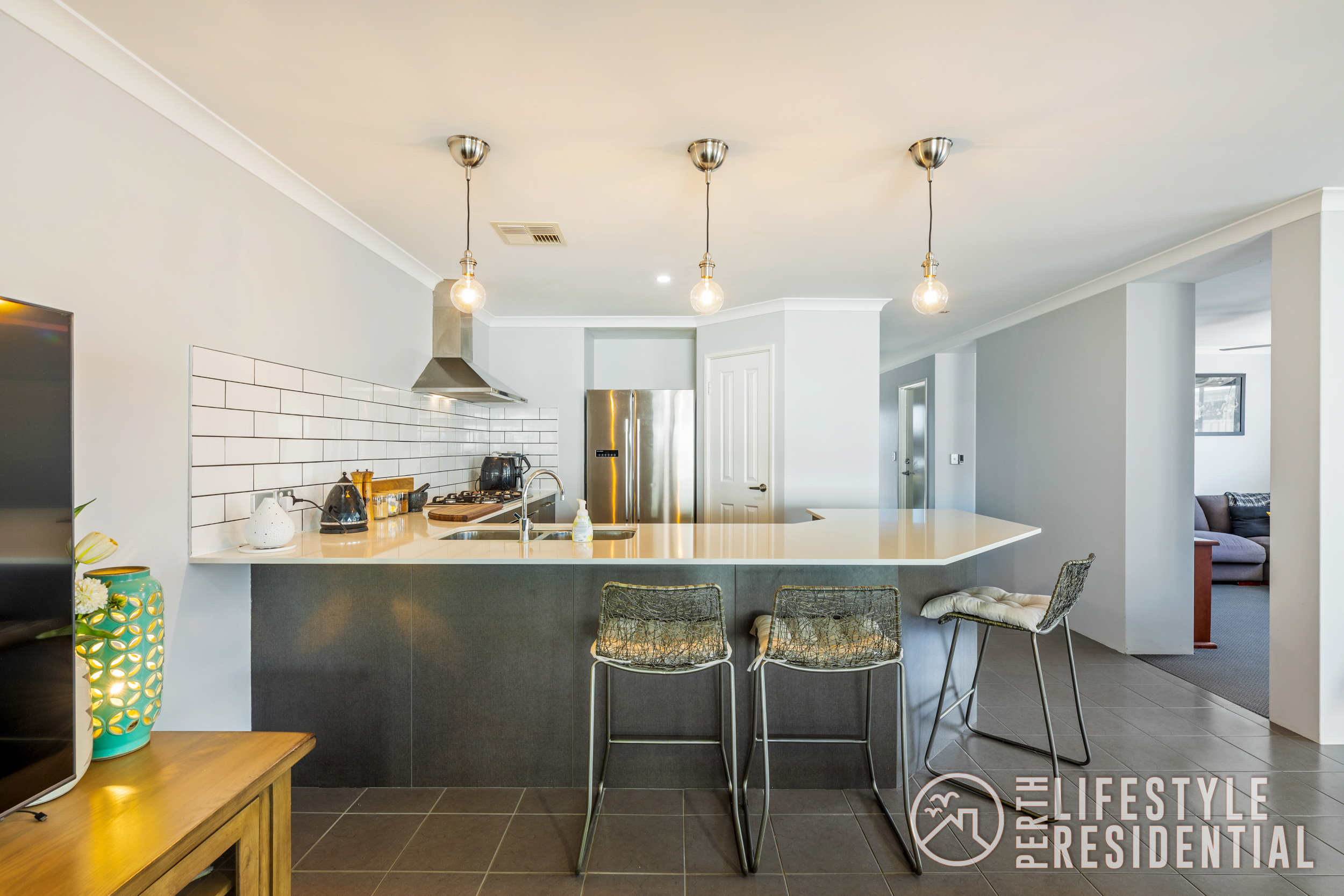 • Stone benchtops and large breakfast bar