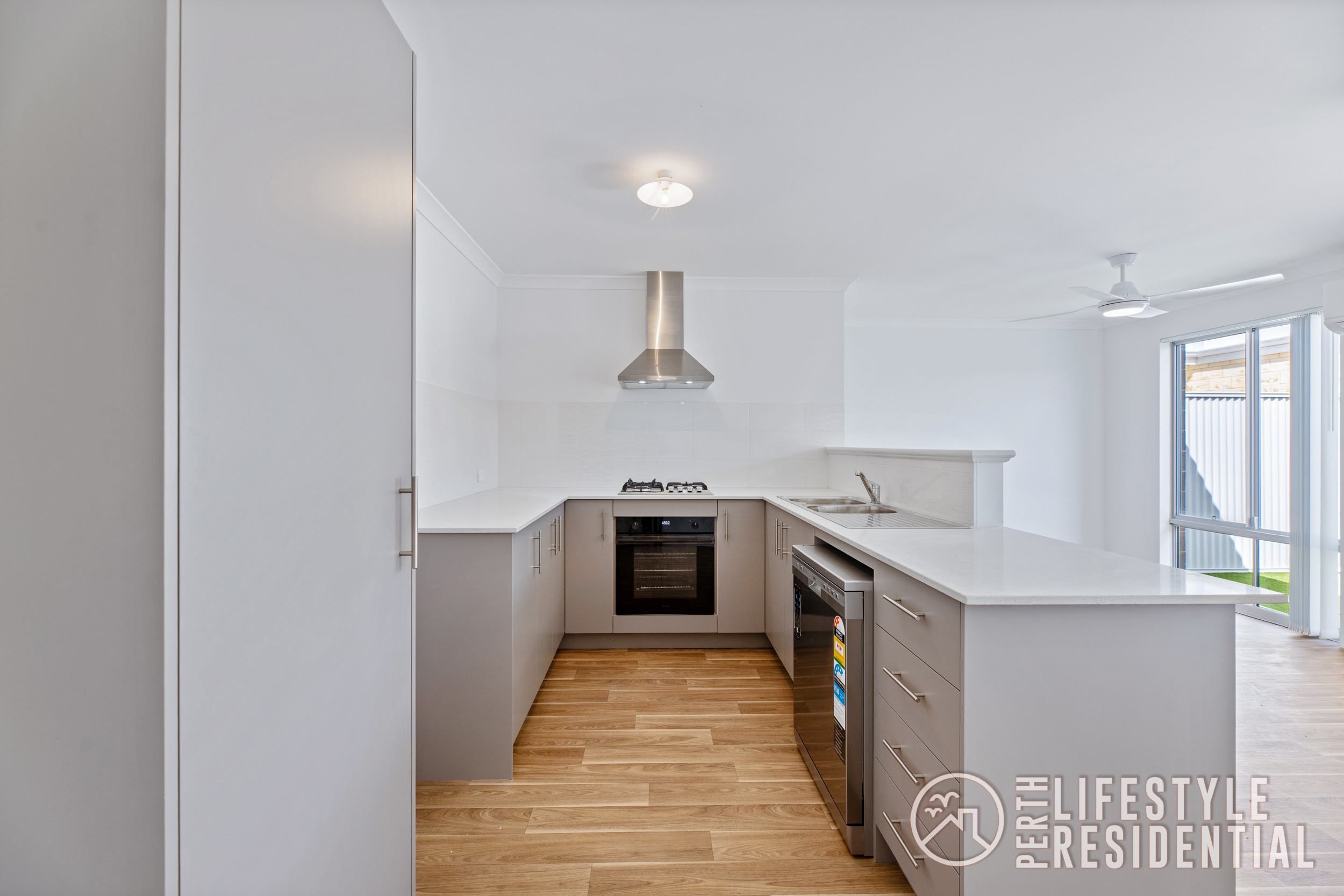 • Kitchen with stone benchtops, gas hotplate, rangehood, oven and dishwasher