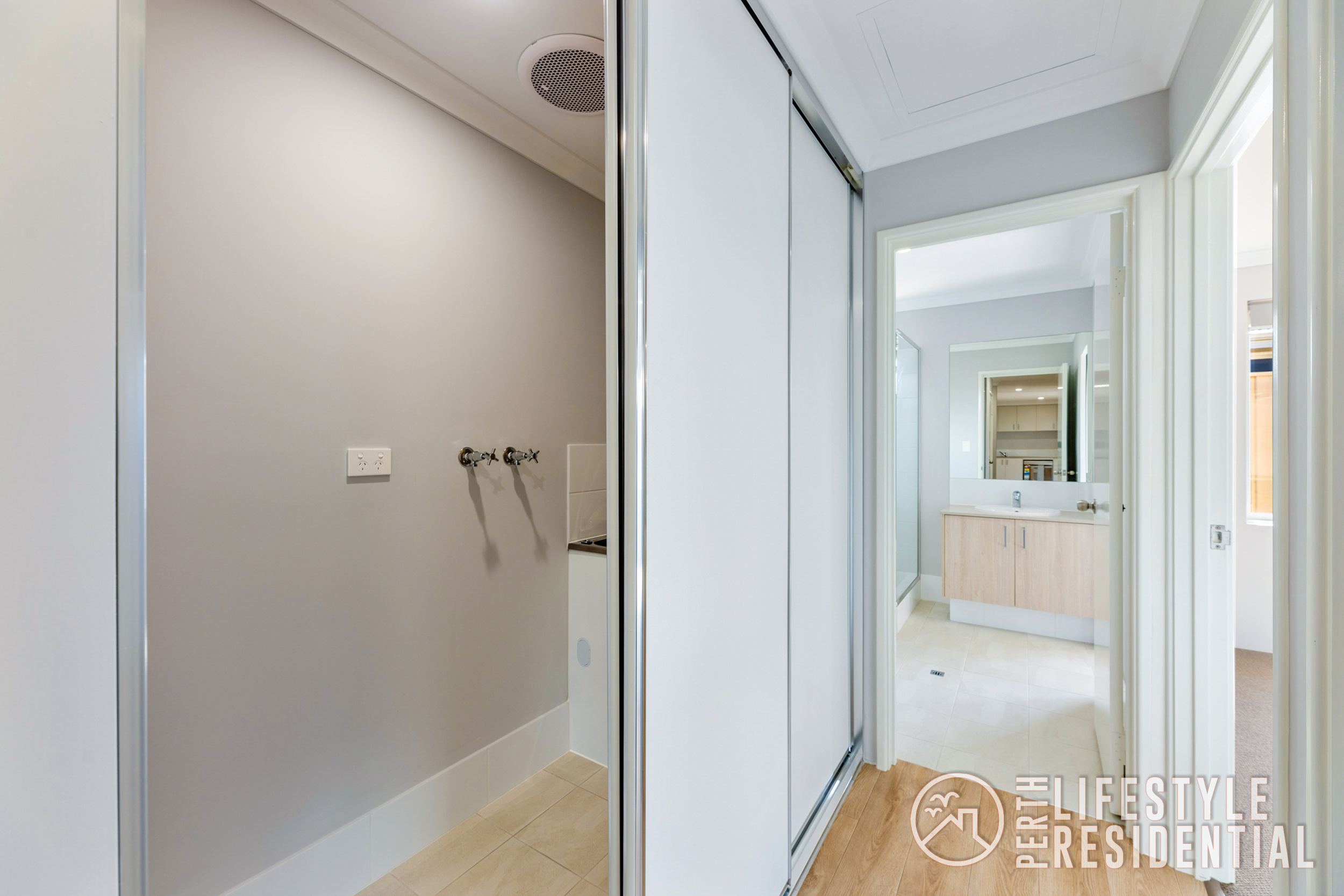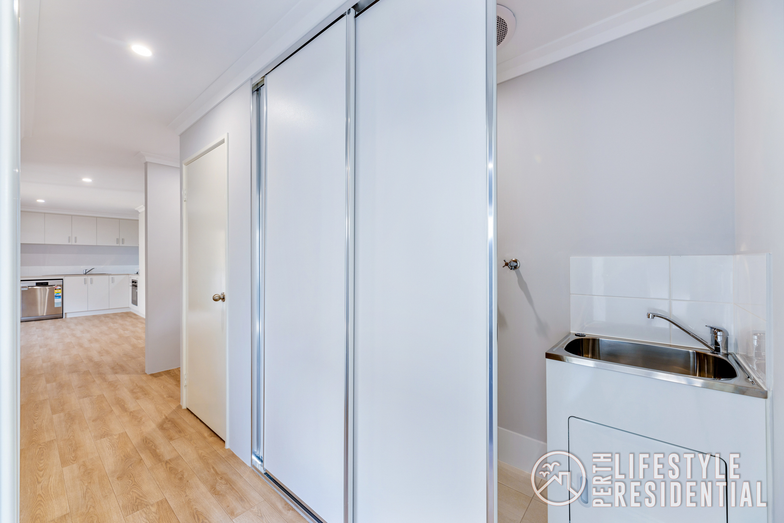 • Laundry behind sliding doors